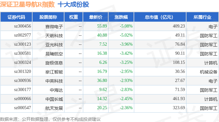 深证卫星导航R(470050)指数十大成份股详情如下: