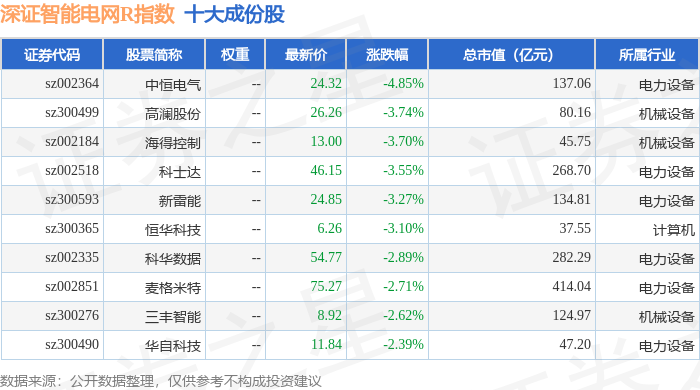 深证智能电网R(470054)指数十大成份股详情如下: