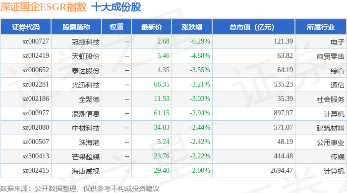 深证国企ESGR(470055)指数十大成份股详情如下: