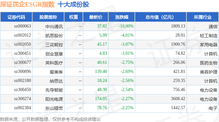深证民企ESGR(470056)指数十大成份股详情如下: