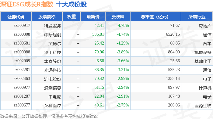 深证ESG成长R(470060)指数十大成份股详情如下: