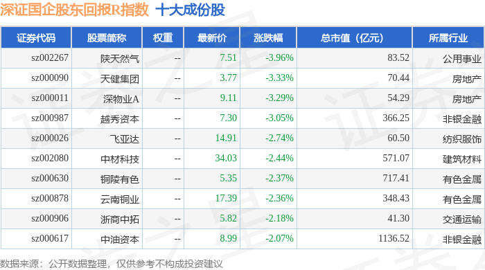 深证国企股东回报R(470064)指数十大成份股详情如下: