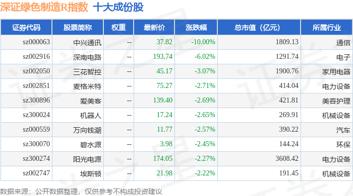 深证绿色制造R(470069)指数十大成份股详情如下: