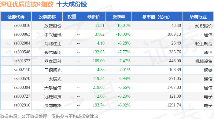 深证优质信披R(470065)指数十大成份股详情如下: