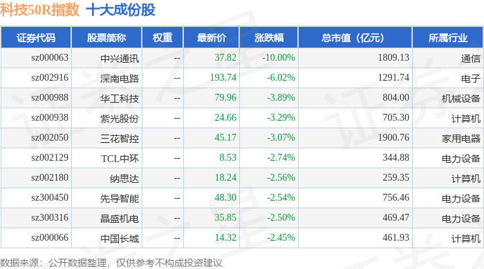 证券之星消息,12月11日,科技50R(470080)指数报收于3730.26点,跌1.05%,成交1152.03亿元,换手率1.56%。当日该指数成份股中,上涨的有8家,金风科技以9.97%的涨幅领涨,下跌的有42家,中兴通讯以10.0%的跌幅领跌。