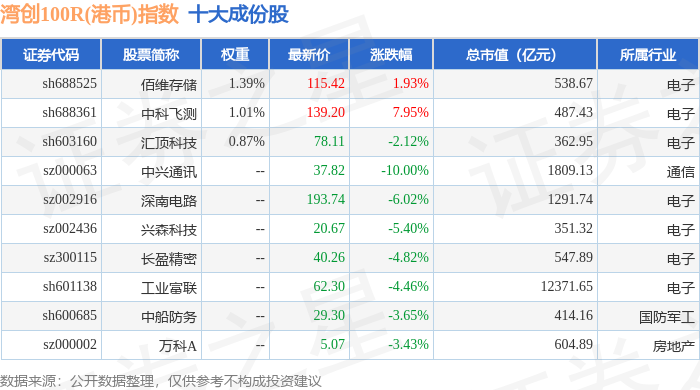 湾创100R(港币)(480002)指数十大成份股详情如下: