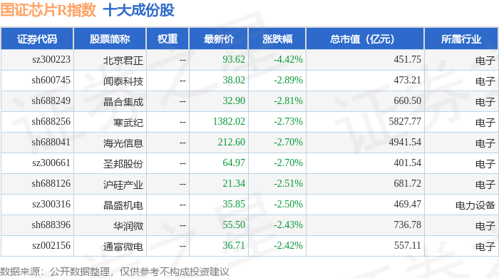 近10日内国证芯片R(480017)指数成份股做了调整,新纳入了1只股票。