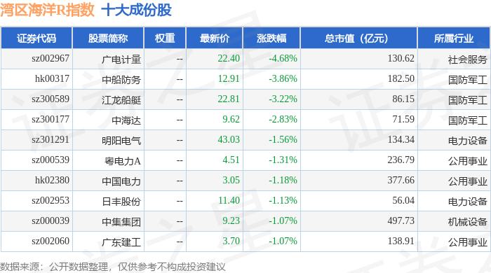 湾区海洋R(480019)指数十大成份股详情如下: