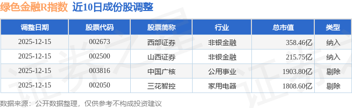 近10日内绿色金融R(480052)指数成份股做了调整,新纳入了2只股票,剔除了2只股票。
