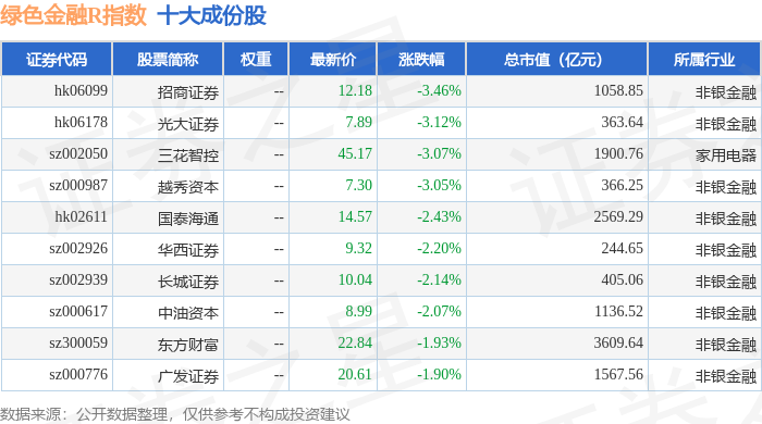 资金流向方面,绿色金融R(480052)指数成份股当日主力资金净流出合计22.31亿元,游资资金净流入合计4.94亿元,散户资金净流入合计17.37亿元。成份股资金流向详情见下表: