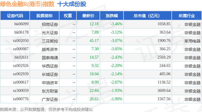 绿色金融R(港币)(480053)指数十大成份股详情如下: