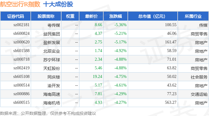 航空出行R(480059)指数十大成份股详情如下: