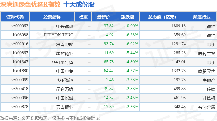 深港通绿色优选R(483011)指数十大成份股详情如下: