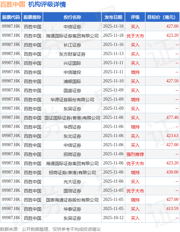 截至2025年12月11日收盘,百胜中国(09987.HK)报收于365.0港元,上涨0.22%,成交量59.26万股,成交额2.18亿港元。投行对该股的评级以买入为主,近90天内共有13家投行给出买入评级,近90天的目标均价为429.95港元。中信证券最新一份研报给予百胜中国买入评级,目标价427港元。