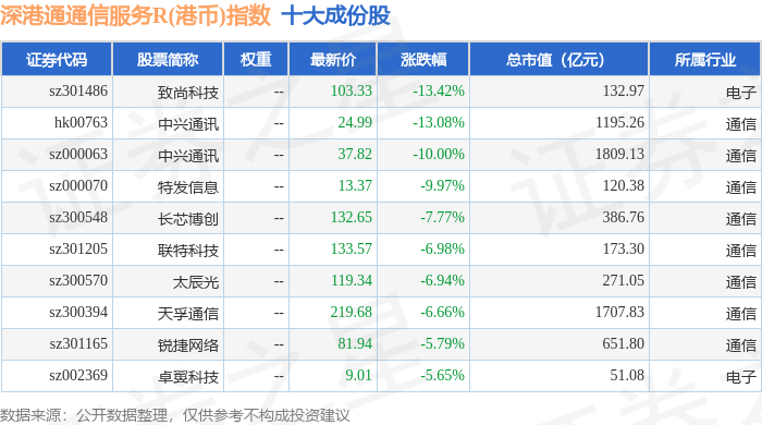 深港通通信服务R(港币)(483034)指数十大成份股详情如下: