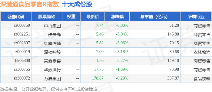 深港通食品零售R(483037)指数十大成份股详情如下:
