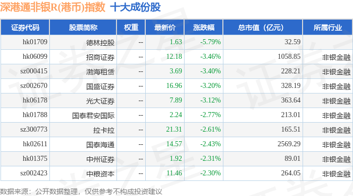 深港通非银R(港币)(483054)指数十大成份股详情如下: