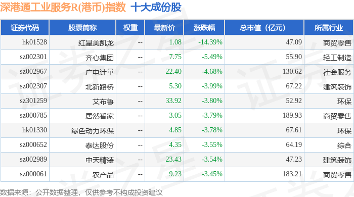 深港通工业服务R(港币)(483056)指数十大成份股详情如下: