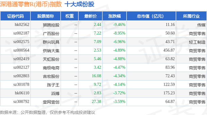深港通零售R(港币)(483074)指数十大成份股详情如下: