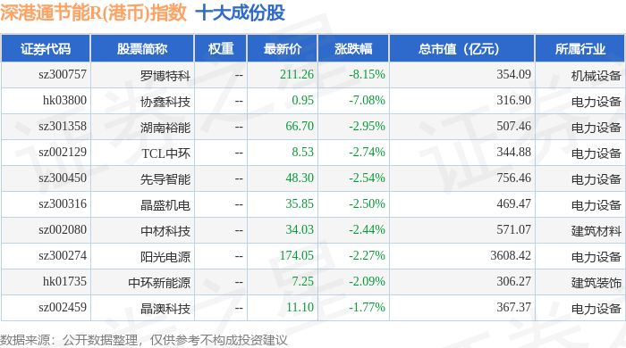 深港通节能R(港币)(483086)指数十大成份股详情如下: