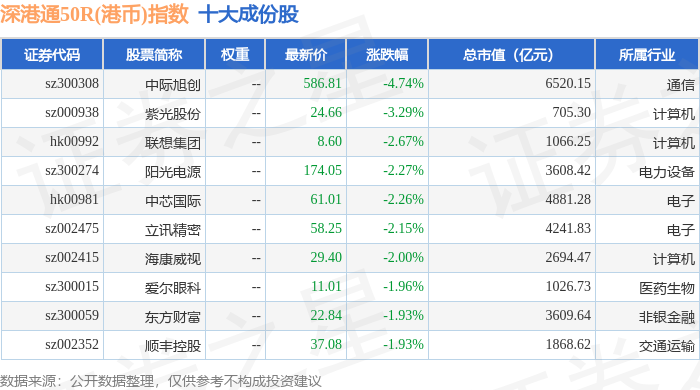 深港通50R(港币)(483092)指数十大成份股详情如下:
