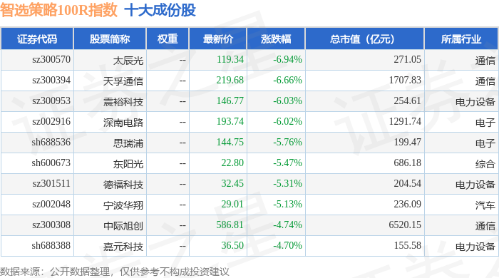 证券之星消息,12月11日,智选策略100R(489015)指数报收于4842.99点,跌2.57%,成交2272.19亿元,换手率2.89%。当日该指数成份股中,上涨的有14家,迈为股份以12.82%的涨幅领涨,下跌的有85家,太辰光以6.94%的跌幅领跌。