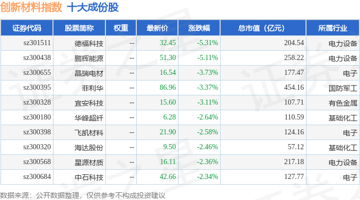 近10日内创新材料(970039)指数成份股做了调整,新纳入了5只股票,剔除了5只股票。