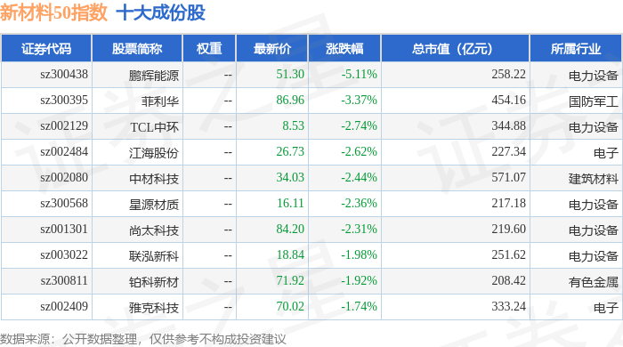 近10日内新材料50(970042)指数成份股做了调整,新纳入了1只股票,剔除了1只股票。