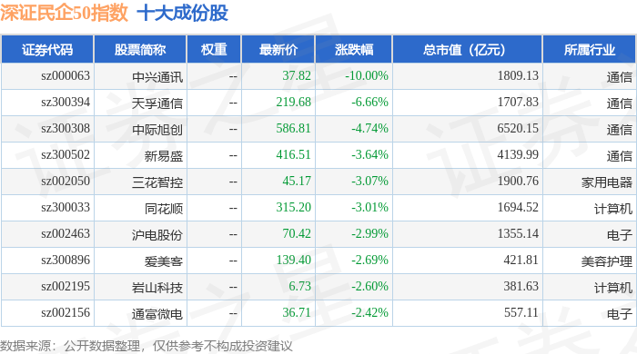 深证民企50(970057)指数十大成份股详情如下: