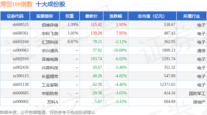 湾创100(980001)指数十大成份股详情如下: