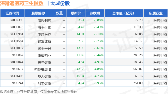 深港通医药卫生(983023)指数十大成份股详情如下: