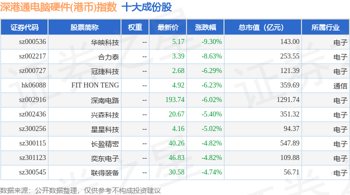 深港通电脑硬件(港币)(983044)指数十大成份股详情如下: