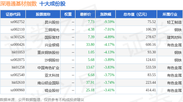 深港通基材(983061)指数十大成份股详情如下: