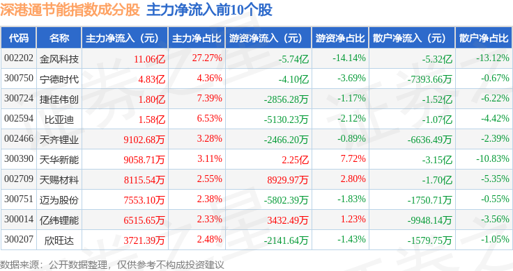 资金流向方面,深港通节能(983085)指数成份股当日主力资金净流出合计3120.43万元,游资资金净流入合计3893.71万元,散户资金净流出合计773.29万元。成份股资金流向详情见下表: