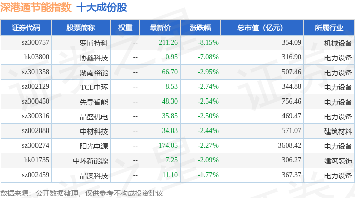 证券之星消息,12月11日,深港通节能(983085)指数报收于2270.14点,跌0.41%,成交715.97亿元,换手率1.09%。当日该指数成份股中,上涨的有11家,迈为股份以12.82%的涨幅领涨,下跌的有38家,罗博特科以8.15%的跌幅领跌。