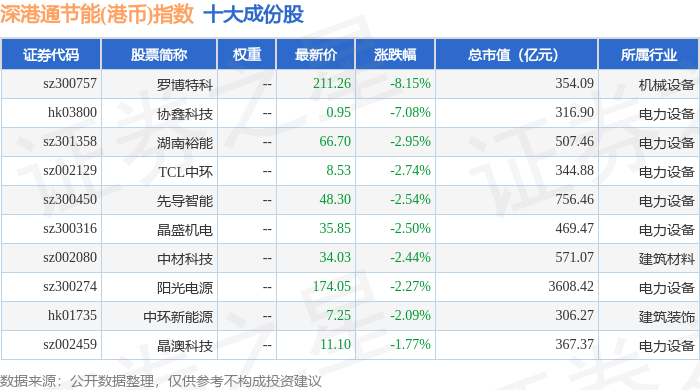 深港通节能(港币)(983086)指数十大成份股详情如下:
