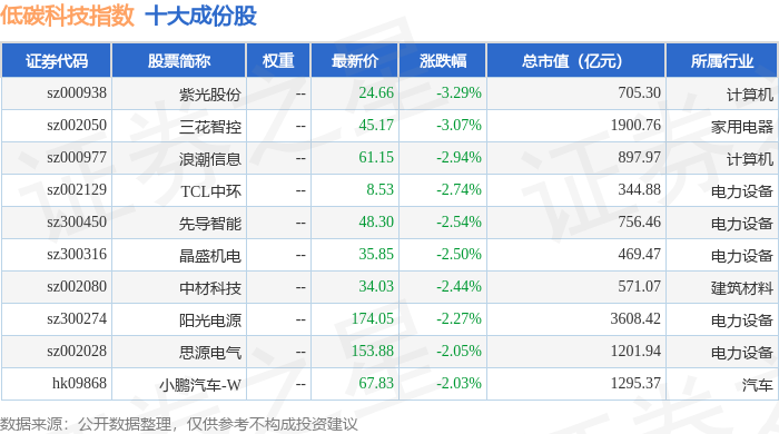 低碳科技(983160)指数十大成份股详情如下: