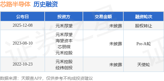 证券之星消息,根据天眼查APP于12月8日公布的信息整理,苏州芯路半导体有限公司股权转让融资,交易额未披露。