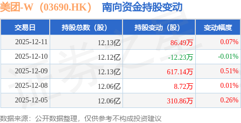 证券之星消息,12月11日南向资金增持86.49万股美团-W(03690.HK)。近5个交易日中,获南向资金增持的有4天,累计净增持1010.98万股。近20个交易日中,获南向资金增持的有16天,累计净增持4070.55万股。截至目前,南向资金持有美团-W(03690.HK)12.13亿股,占公司已发行普通股的19.84%。