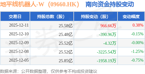证券之星消息,12月11日南向资金增持966.66万股地平线机器人-W(09660.HK)。近5个交易日中,获南向资金减持的有4天,累计净减持4612.35万股。近20个交易日中,获南向资金增持的有12天,累计净增持9302.44万股。截至目前,南向资金持有地平线机器人-W(09660.HK)25.58亿股,占公司已发行普通股的17.44%。