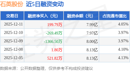 证券之星消息,12月11日,石英股份(603688)融资买入2024.11万元,融资偿还1824.32万元,融资净买入199.79万元,融资余额7.99亿元,近20个交易日中有11个交易日出现融资净买入。