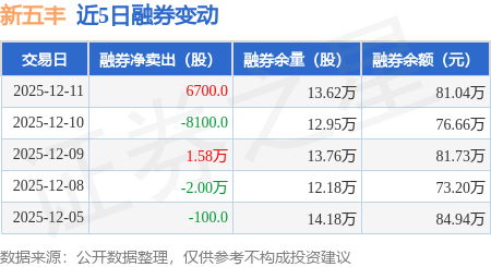 证券之星消息,12月11日,新五丰(600975)融资买入893.89万元,融资偿还1405.81万元,融资净卖出511.92万元,融资余额2.03亿元。