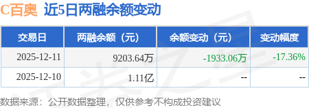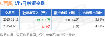 证券之星消息,12月11日,C百奥(688796)融资买入7553.03万元,融资偿还9486.09万元,融资净卖出1933.06万元,融资余额9203.64万元。