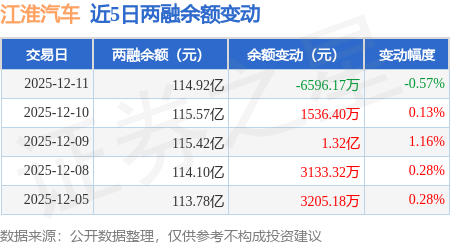 证券之星消息,12月11日,江淮汽车(600418)融资买入5.29亿元,融资偿还5.95亿元,融资净卖出6630.01万元,融资余额114.77亿元,近20个交易日中有12个交易日出现融资净买入。