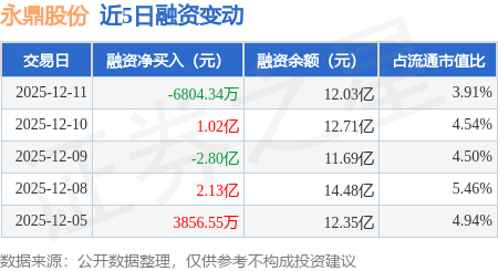 证券之星消息,12月11日,永鼎股份(600105)融资买入3.74亿元,融资偿还4.42亿元,融资净卖出6804.34万元,融资余额12.03亿元,近20个交易日中有12个交易日出现融资净买入。