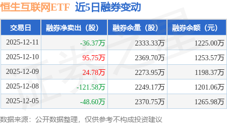 证券之星消息,12月11日,恒生互联网ETF(513330)融资买入5.17亿元,融资偿还5.86亿元,融资净卖出6930.78万元,融资余额17.0亿元,近20个交易日中有11个交易日出现融资净买入。