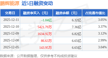 证券之星消息,12月11日,鹏辉能源(300438)融资买入9505.52万元,融资偿还1.99亿元,融资净卖出1.04亿元,融资余额6.32亿元。
