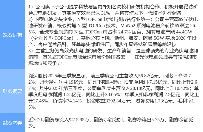 该股为钙钛矿电池,光伏,海南概念概念热股,当日钙钛矿电池概念上涨1.04%,光伏概念上涨0.96%。