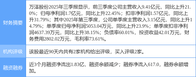 2025年10月27日,民生证券研究员尹会伟,孔厚融发布了对万泽股份的研报《2025年三季报点评:3Q25净利润增长24%;五期激励助力长期发展》,该研报对万泽股份给出“买入”评级。证券之星数据中心根据近三年发布的研报数据计算,该研报作者对此股的盈利预测准确度为65.39%。