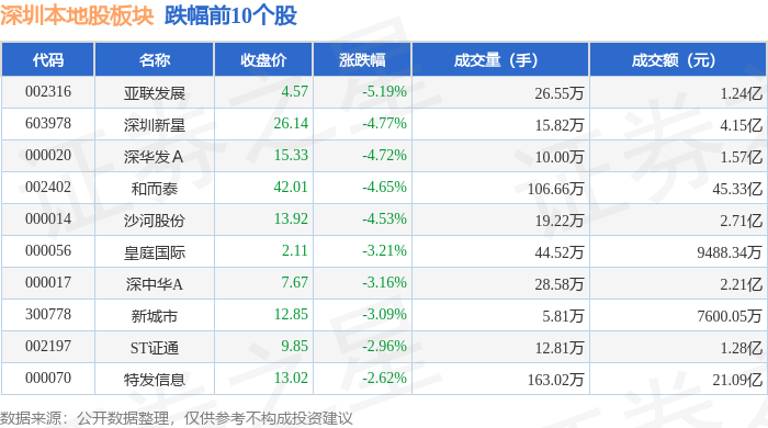 从资金流向上来看,当日深圳本地股板块主力资金净流出8.3亿元,游资资金净流出3.86亿元,散户资金净流入12.16亿元。深圳本地股板块个股资金流向见下表: